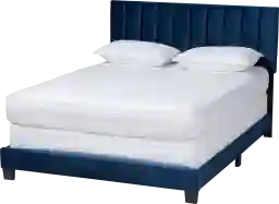With its chic headboard, the Oaksys navy queen bed adds a striking look to any bedroom. Set on top of solid black wood legs, the Oaksys is upholstered in a soft, luxurious velvet fabric that feels exceptionally soft to the touch. Its glamorous channel tufted headboard forms an impressive backdrop in even the simplest of spaces. Add a set of crisp white sheets and plush duvet to complete the look. This bed requires a box spring for use. Customer assembly is required.