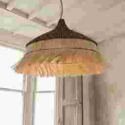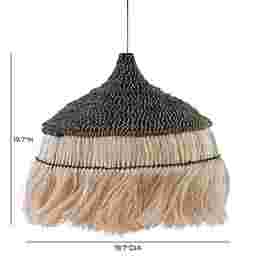 This fixture is engineered to provide a "textural glow." While the primary light source is directed downward, the handwoven fringe and sculptural black crown allow light to filter through the fibers. This creates soft, organic shadows and dappled patterns on the walls, adding a layer of warmth and "island artistry" to coastal or modern interiors.