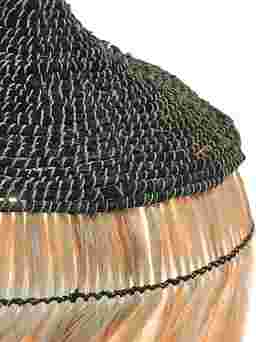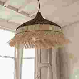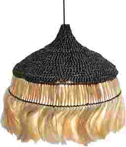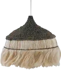 Abaca is a premium natural fiber prized for its exceptional tensile strength and durability; it was historically used in maritime ropes because of its resilience. In this pendant, the hand-harvested abaca provides a sustainable, organic texture that resists sagging, ensuring the sculptural silhouette and intricate black weave maintain their shape and sophistication for years to come.