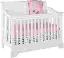 Lay your little one in luxury for a long time with the sturdy and stylish Oberon crib. Subtle sloping curves and clean slats create a lovely look with a classic design. Comprised of wood solids and finished in a non-toxic white finish, it's oversized to help accommodate growth spurts. A four point positioning system goes up to 6.5," creating an easily adjustable mattress height. This crib is JPMA certified and it meets or exceeds all safety standards set by the CPSC and ASTM. Add the toddler rails or conversion rails (both sold separately) to extend this crib's usefulness into their toddler years and beyond! Easily converts to toddler bed with toddler rails as an additional purchase. Easily converts to full bed with conversion rails added as additional purchase. Customer assembly required. Crib mattress and linens not included.