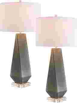 Add a touch of contemporary style to your favorite spaces with the Obsydio lamp set. A sleek glass base in a versatile gray color blends well with a wide variety of furniture looks. This pair has a three-way light switch and can accommodate up to a 100-watt bulb (not included).
