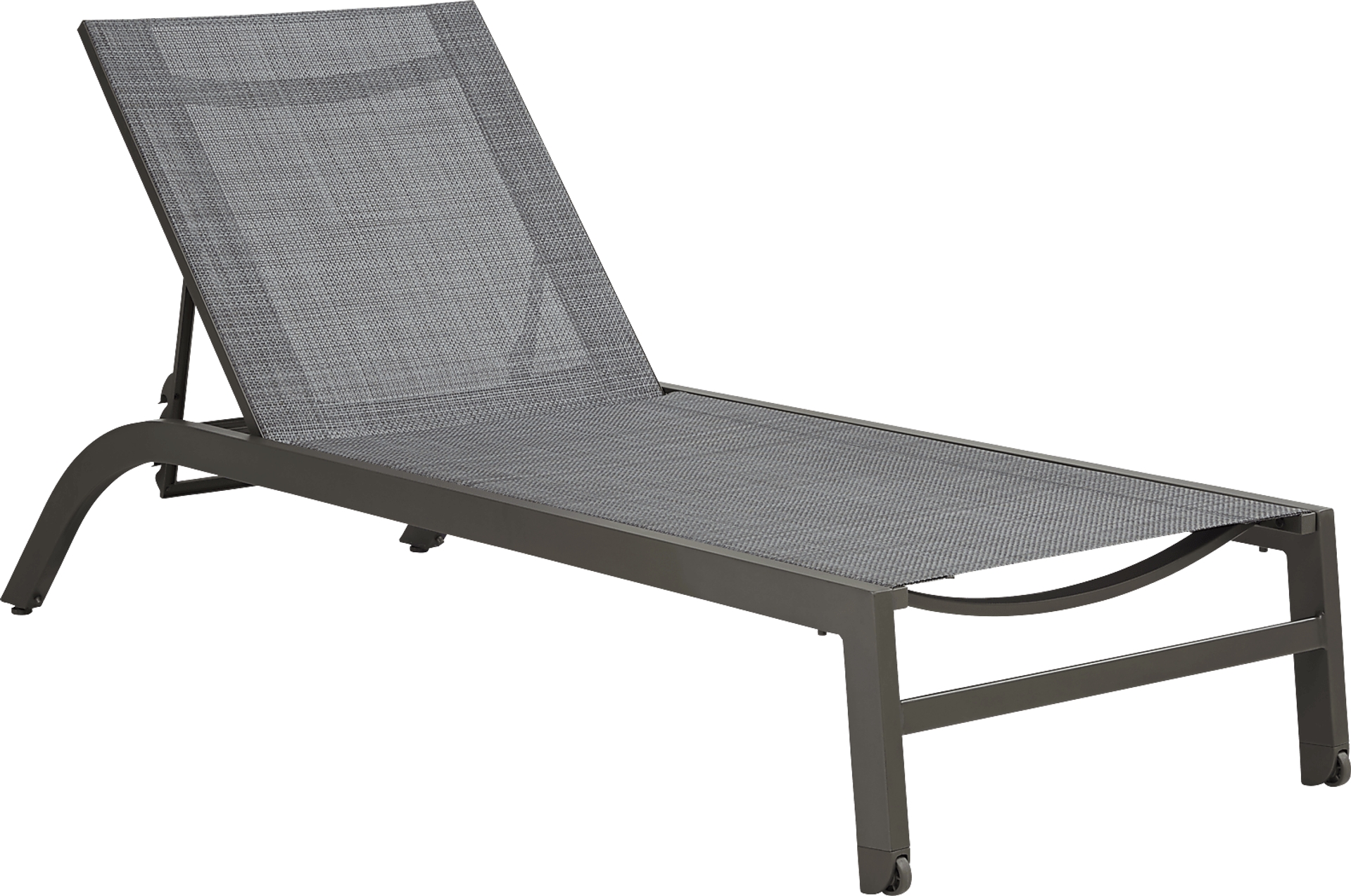 Sleek, sturdy and affordable, the Ocean Tide chaise takes a contemporary approach to outdoor relaxation. The chaise is made with a rust proof aluminum frame in a neutral gray finish. The adjustable multi-position back and durable Textilene seating invite you to enjoy warm days outside. Wheels lend easy movement while the armless design allows multiple chaises to be stacked when not in use.
