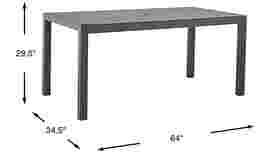 Enjoy outdoor meals and cookouts with the Ocean Tide outdoor dining table. This 35 x 64 inch rectangular top table, made to look like wood with a lightweight Duraboard top, is supported by an aluminum frame and legs in a gray finish. A center hole provides the option to add an umbrella for shade.