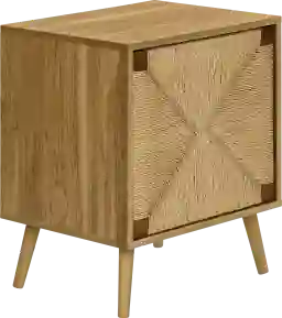 Add some style to your living room with the Oceanhead brown end table, featuring a fashion-forward light walnut laminate finish and accented with a hand-crafted, natural seagrass cabinet door. Durably designed with solid wood legs, this contemporary, mid-century inspired side table offers both practical storage and a fashionable style. The convenient push latch mechanism on the seagrass door opens to a spacious interior with an adjustable shelf, while the easy to clean top and space-saving design makes it perfect for small rooms. Place it next to a sofa as an end table with a lamp on top for a functional furniture piece suitable for all spaces. Easy to assemble with illustrated instructions and all hardware included, this chic end table will be ready to elevate any room. Customer assembly is required.