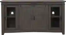 The Odessa Crossing console is a gorgeous rustic style TV Stand. Features the Lightning Fast Assembly System: Easy, quick, and tool less assembly process allows for the TV stand to be assembled in 10 minutes or less. Same strength and rigidity as traditional assembly method. Constructed of solid pine with pine veneer back panel that offers just the right amount of distressing that can blend easily with other farmhouse, rustic, coastal, warehouse, or loft looks. The two side doors feature a metal mesh style look that adds to the rustic and distressed look. Four total interior shelves are removable and adjustable providing versatile storage options for audio, video, gaming components. Cable management cutouts are conveniently provided for the main cabinet and outer cabinets. Ideal for most 65" flat panel TVs and up to 70". Customer assembly required.
