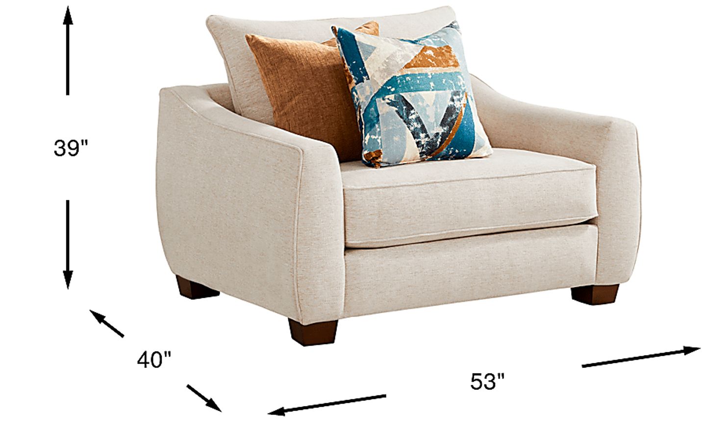 With a width of 53 inches, this "chair and a half" is significantly larger than a standard armchair. While it provides exceptional comfort and room for two to snuggle, it requires a larger footprint. For urban apartment living, we recommend measuring your space carefully to ensure it doesn't overwhelm the room; however, its transitional design and ivory tone can help a smaller space feel more open and airy rather than cluttered.