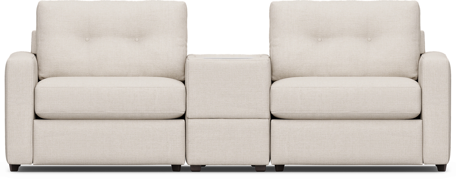 Discover the limitless possibilities of the Drew & Jonathan ModularOne, thoughtfully designed with comfort and flexibility in mind. This customizable seating solution features individual pieces that can be configured to any shape your room needs - the seating arrangement you want is always right at your fingertips. Each individual piece is upholstered on all sides in handsome off-white textured fabric. The seating area has welted track arms, top-stitched seat cushions and button-tufted back cushions for an elegant silhouette. Seats with power reclining functionality allow for easy adjustment of the footrest, providing the ultimate in personalized comfort. A media console provides hidden storage, USB charging ports, wireless charging, bluetooth-enabled speakers, and doubles as a side table with a sleek acrylic top. Includes LAF chair, media console and RAF chair. Upholstery: 100% Polypropylene.