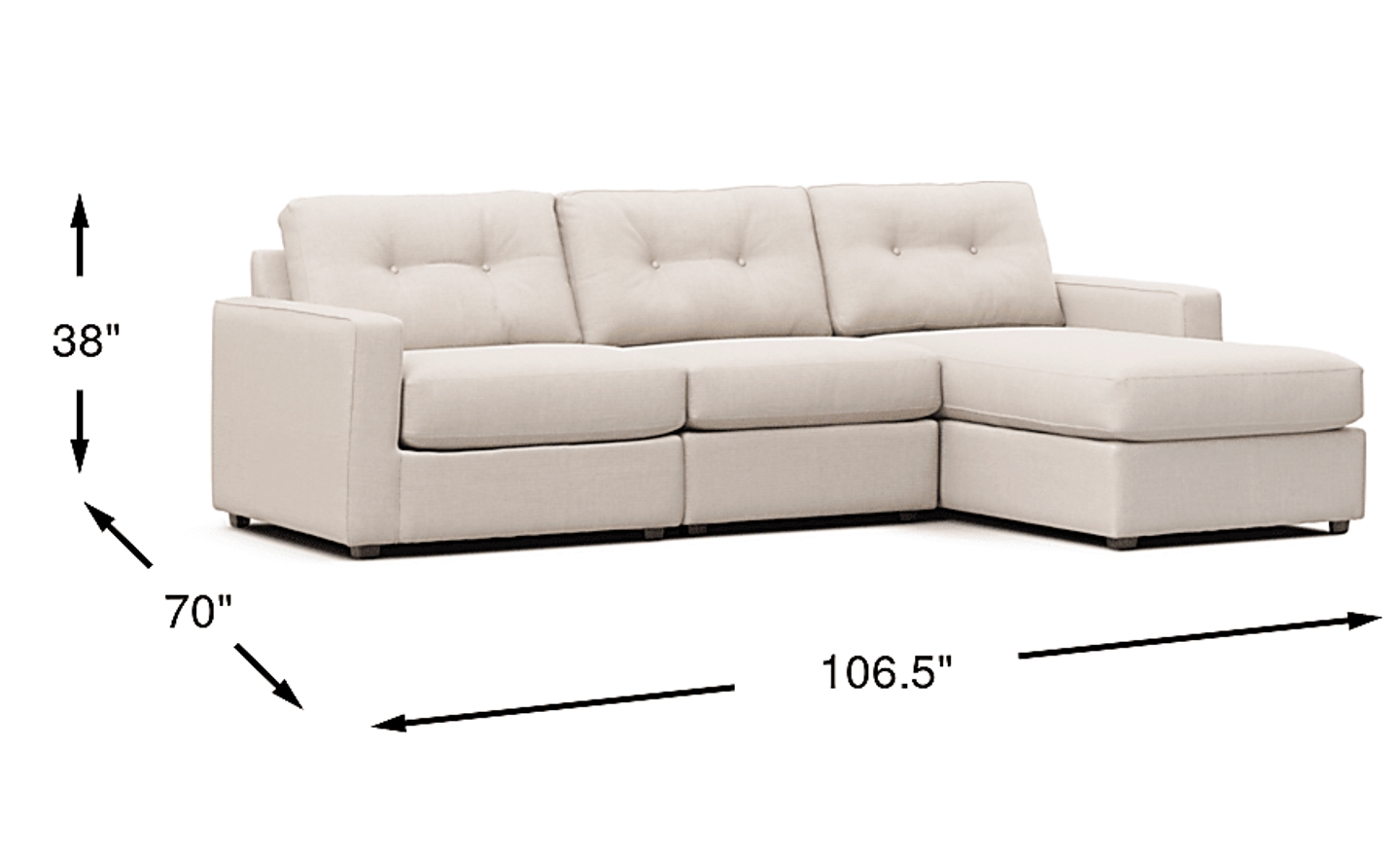 Discover the limitless possibilities of the Drew & Jonathan ModularOne, thoughtfully designed with comfort and flexibility in mind. This customizable seating solution features individual pieces that can be configured to any shape your room needs - the seating arrangement you want is always right at your fingertips. Each individual piece is upholstered on all sides in handsome off-white textured fabric. The seating area has welted track arms, top-stitched seat cushions and button-tufted back cushions for an elegant silhouette. Includes RAF chaise, armless chair, and LAF chair. Upholstery: 100% Polypropylene.