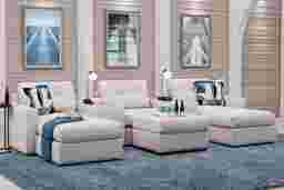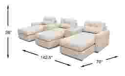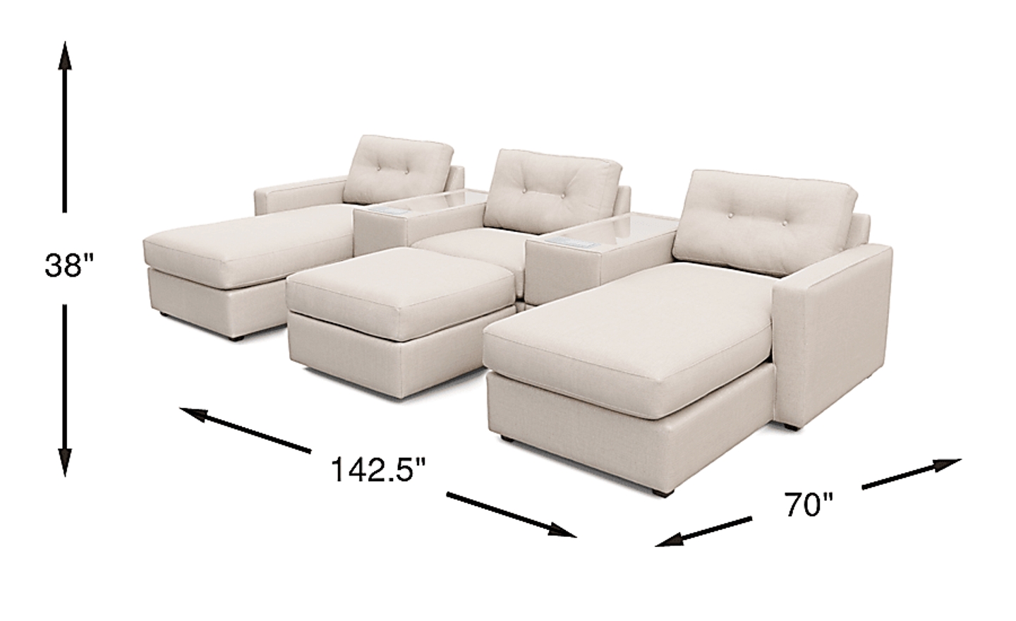 Discover the limitless possibilities of the Drew & Jonathan ModularOne, thoughtfully designed with comfort and flexibility in mind. This customizable seating solution features individual pieces that can be configured to any shape your room needs - the seating arrangement you want is always right at your fingertips. Each individual piece is upholstered on all sides in handsome off-white textured fabric. The seating area has welted track arms, top-stitched seat cushions and button-tufted back cushions for an elegant silhouette. Two media consoles provide hidden storage, USB charging ports, wireless charging, bluetooth-enabled speakers, and double as side tables with sleek acrylic tops. Includes LAF chaise, media consoles, armless chair, RAF chaise, and storage ottoman. Upholstery: 100% Polypropylene.