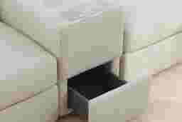 Discover the limitless possibilities of the Drew & Jonathan ModularOne, thoughtfully designed with comfort and flexibility in mind. This customizable seating solution features individual pieces that can be configured to any shape your room needs - the seating arrangement you want is always right at your fingertips. Each individual piece is upholstered on all sides in handsome off-white textured fabric. The seating area has welted track arms, top-stitched seat cushions and button-tufted back cushions for an elegant silhouette. Two media consoles provide hidden storage, USB charging ports, wireless charging, bluetooth enabled speakers, and double as side tables with sleek acrylic tops. Upholstery: 100% Polyester.