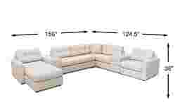 In its standard configuration, this sectional measures 156 inches wide by 124.5 inches deep. For a comfortable flow in your living room, we recommend leaving at least 30 to 36 inches of walkway space around the unit. Because the pieces are modular, you have the unique advantage of removing or repositioning a module if the full 156-inch width is too tight for your specific floor plan.
