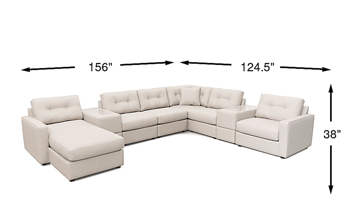 With a total width of 156 inches and a depth of 124.5 inches, this is a substantial seating solution designed for large, open-concept living areas or dedicated media rooms. Its generous proportions are perfect for delineating space in a Great Room without the need for additional walls, comfortably seating a large family or a group of guests for movie nights and social gatherings.