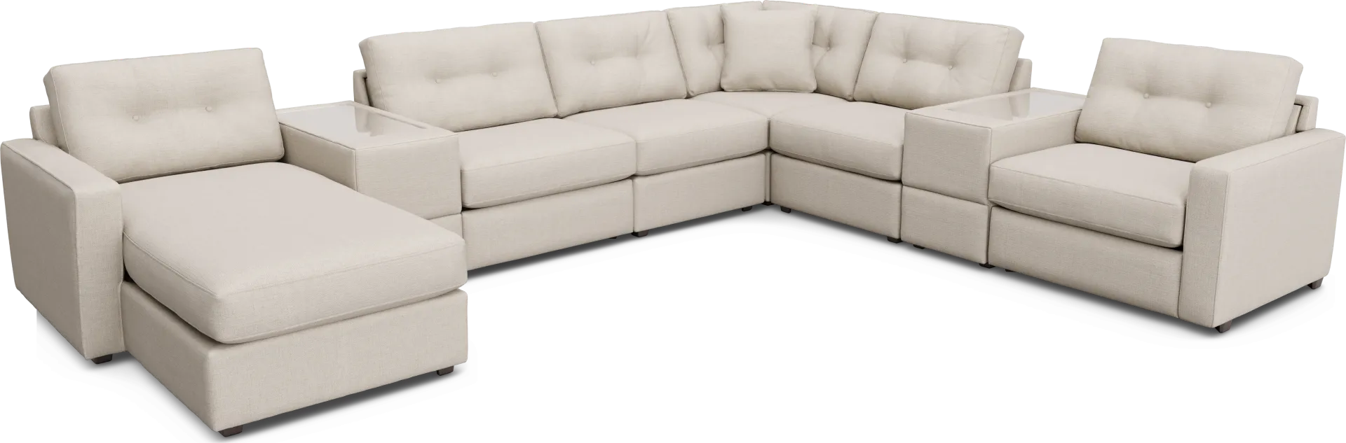 Discover the limitless possibilities of the Drew & Jonathan ModularOne, thoughtfully designed with comfort and flexibility in mind. This customizable seating solution features individual pieces that can be configured to any shape your room needs - the seating arrangement you want is always right at your fingertips. Each individual piece is upholstered on all sides in handsome off-white textured fabric. The seating area has welted track arms, top-stitched seat cushions and button-tufted back cushions for an elegant silhouette. Upholstery: 100% Polypropylene.