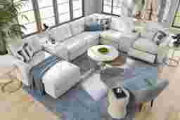 Discover the limitless possibilities of the Drew & Jonathan ModularOne, thoughtfully designed with comfort and flexibility in mind. This customizable seating solution features individual pieces that can be configured to any shape your room needs - the seating arrangement you want is always right at your fingertips. Each individual piece is upholstered on all sides in handsome off-white textured fabric. The seating area has welted track arms, top-stitched seat cushions and button-tufted back cushions for an elegant silhouette. Seats with power reclining functionality allow for easy adjustment of the footrest, providing the ultimate in personalized comfort. Two consoles double as side tables with sleek acrylic tops. Includes LAF chaise, 2 consoles, armless power recliner, 2 armless chairs, corner wedge, power RAF recliner. Upholstery: 100% Polyester.