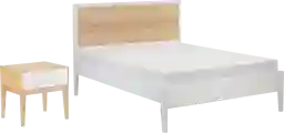 Design the bedroom of your dreams with our Ogallah queen bedroom set with 2 nightstands. Inspired by the minimalism of Danish design, this bedroom set includes a queen-size bed and 2 nightstands in a beautiful two-tone finish. The queen bed frame features knot-free, solid pine and birch wood construction for superior strength and durability. Each nightstand features a soft-close, solid wood drawer with plenty of space to keep all your everyday essentials in reach. Bedroom set features a sleek design with minimalist style Non-toxic two-tone white and natural wood finishes add a clean, contemporary look. Queen bed frame features bed frame slats, metal support bars, and 3 underbed support legs to create a high 750 lb resting weight capacity Nightstands feature soft close drawers for a smooth roll. Assembled bed measures 84L x 63.25W x 46.25H Assembled nightstand end table measures 24.25L x 19.25W x 24.25H. Customer assembly required.