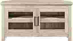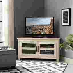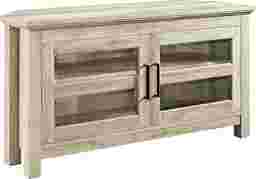 Utilize your corner space with this 44" Ogden media console, its corner design makes this the perfect space saving unit. Features ample media storage and two double doors with tempered safety glass panes. Crafted from durable laminate to accommodate TVs up to 48". Customer Assembly Required