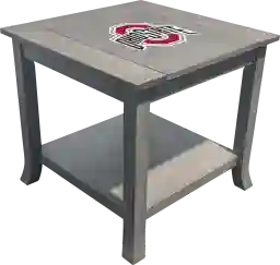 Designed for maximum versatility, this end table includes a reversible top insert. You can proudly display the full-color team logo during the season or for game-day gatherings. When you prefer a more understated look, simply flip the insert to reveal a sleek, finished surface that matches the ash-stained wood, seamlessly blending the piece into your everyday home decor.