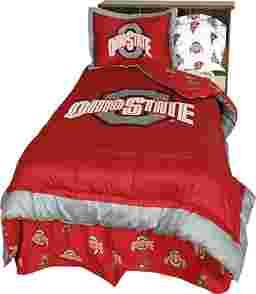 No young football fan's room is complete without the perfect bedding to inspire dreams of winning the big game. All items are 100% cotton sateen, 200 thread count for a wonderfully soft feel. Comforter has your favorite university's logo printed large on front with an all over logo pattern printed on the back giving you a reversible comforter with two unique looks. This set includes a twin comforter and one pillow sham. Machine Washable