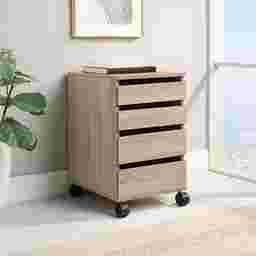 This Okeli 4-drawer mobile pedestal features easy to access and functional drawer storage. Featured in 3 stylish finishes, this product coordinates with any office décor. The heavy duty and locking casters allow the cabinet easy mobility when in use and the 24" height allows easy storage under most desks. This cabinet utilizes high quality epoxy coated steel drawer slides for long lasting smooth operation. Customer assembly is required.