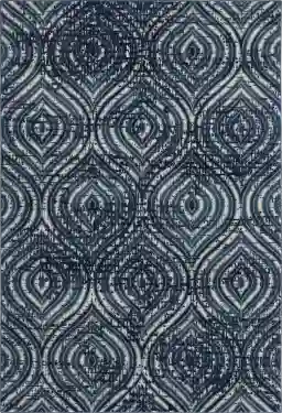 The Ogee pattern on this rug provides a sophisticated contemporary focal point. To achieve a balanced aesthetic, we suggest pairing the blue tones with a neutral-colored sofa, such as light gray, cream, or beige. Because the pattern resembles organic textures like marble veins or tree bark, it introduces a layer of visual interest that complements minimalist or modern furniture. Incorporating blue accent pillows or wall art can help draw the color upward and create a harmonious flow throughout the room.
