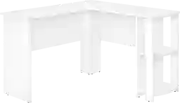 With a generous worksurface and built-in storage, the Oletangy white desk is ideal for students or home offices with limited space. Two convenient storage units provides space to neatly organize reference books and school supplies. Finished on all sides in a wood-look laminate, this space-saving versatile desk is intended for placement in a corner but can be positioned anywhere in a bedroom, dorm room, or home office. Customer assembly is required.