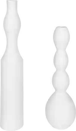 This striking Olisa II set of two oversized white ceramic vases features unique shapes that create a bold and contemporary statement in any space. Each vase showcases a distinct silhouette, adding visual interest and artistic flair to your decor. Perfect for displaying large floral arrangements or standing alone as decorative pieces.