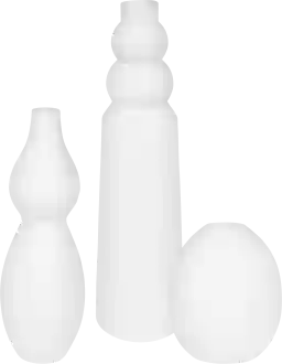 This striking Olisa set of three white ceramic vases features unique shapes that create a bold and contemporary statement in any space. Each vase showcases a distinct silhouette, adding visual interest and artistic flair to your decor. Perfect for displaying large floral arrangements or standing alone as decorative pieces.