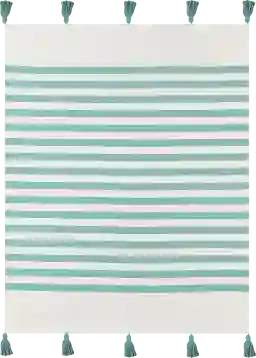 This throw features classic, bold stripes in a serene aqua color, which is a hallmark of coastal interior design. The vintage wash provides a relaxed, sun-bleached aesthetic, while the hand-finished tassels add a touch of artisanal flair. It pairs exceptionally well with white slipcovered furniture or light wood accents to create a cohesive, beach-inspired look.