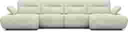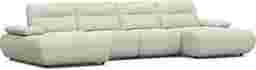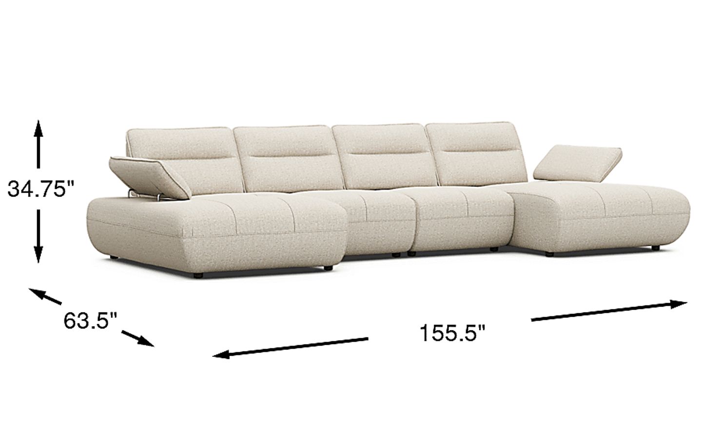 Distinctive design and adjustable comfort blend harmoniously in the Olympia sectional, creating a living space that never loses its exciting look and feel. Linen-colored chenille hugs stunning curves from the base to the tufted seat cushions and the top of each wedge-shaped back cushion. Seat backs feature individually adjustable depth for the perfect comfort setting. The height of each arm can also be adjusted to positions ideal for leaning or even laying down. Upholstery: 100% polyester. Accent pillows not included.