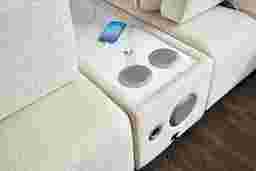 Unlike traditional stationary seating, this sofa features wedge-shaped back cushions with individually adjustable depths. This allows each person to customize their seat to their preferred level of support. Additionally, the height of each arm can be adjusted to various positions, making them ideal for leaning against while reading or laying down for a nap.
