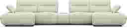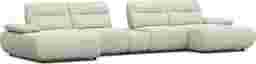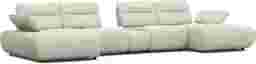 Distinctive design and adjustable comfort blend harmoniously in the Olympia sectional, creating a contemporary living space that never loses its exciting look and feel. Linen-colored chenille hugs stunning curves from the base to the tufted seat cushions and the top of each wedge-shaped back cushion. Seat backs feature individually adjustable depth for the perfect comfort setting. The height of each arm can also be adjusted to positions ideal for leaning or even laying down. Upholstery: 100% Polyester.