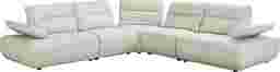 Distinctive design and adjustable comfort blend harmoniously in the Olympia sectional, creating a living space that never loses its exciting look and feel. Linen-colored chenille hugs stunning curves from the base to the tufted seat cushions and the top of each wedge-shaped back cushion. Seat backs feature individually adjustable depth for the perfect comfort setting. The height of each arm can also be adjusted to positions ideal for leaning or even laying down. Upholstery: 100% Polyester.