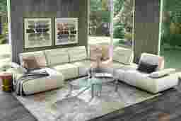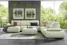 Distinctive design and adjustable comfort blend harmoniously in the Olympia sectional, creating a living space that never loses its exciting look and feel. Linen-colored chenille hugs stunning curves from the base to the tufted seat cushions and the top of each wedge-shaped back cushion. Seat backs feature individually adjustable depth for the perfect comfort setting. The height of each arm can also be adjusted to positions ideal for leaning or even laying down. Bringing another layer of luxury, the console in this configuration includes a bluetooth-enabled sound system and USB charging ports set into a white top with a marble pattern. Upholstery: 100% Polyester.