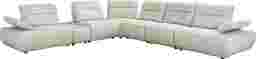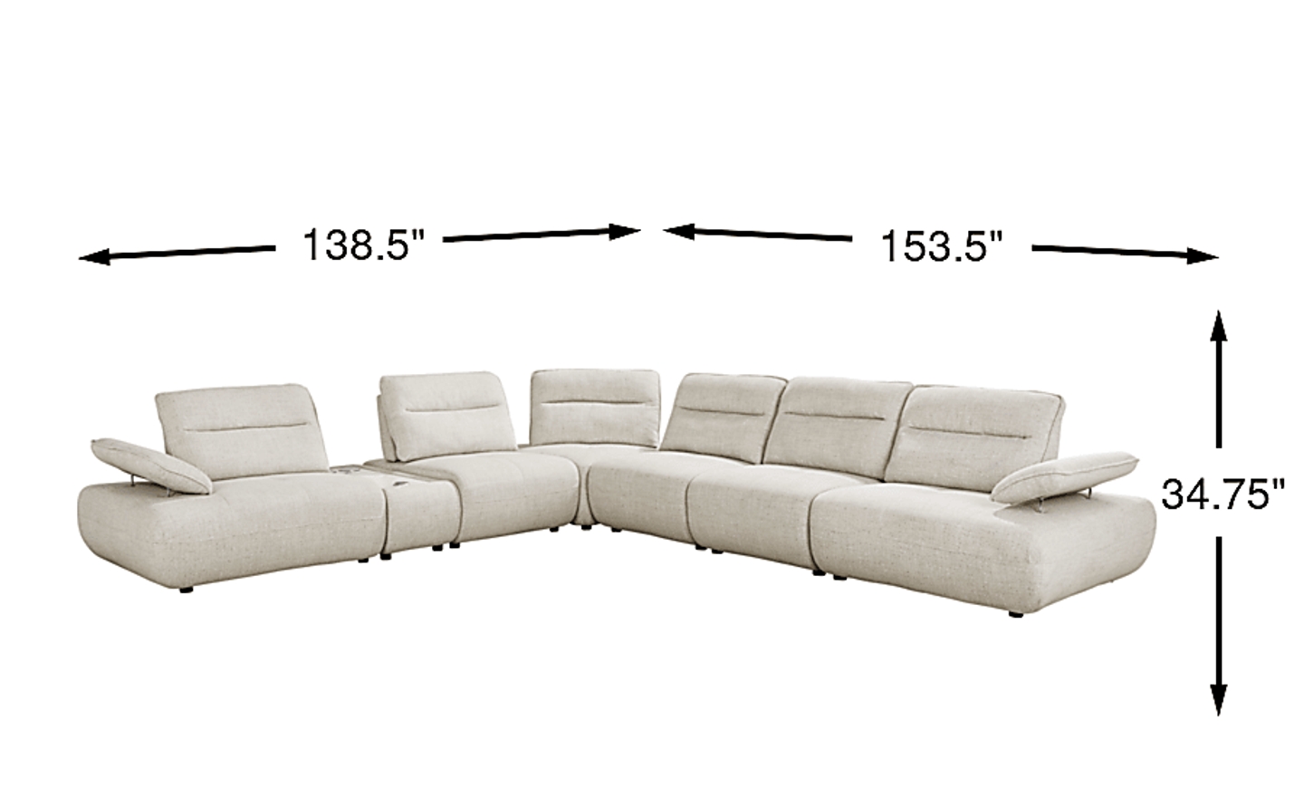 Distinctive design and adjustable comfort blend harmoniously in the Olympia sectional, creating a living space that never loses its exciting look and feel. Linen-colored chenille hugs stunning curves from the base to the tufted seat cushions and the top of each wedge-shaped back cushion. Seat backs feature individually adjustable depth for the perfect comfort setting. The height of each arm can also be adjusted to positions ideal for leaning or even laying down. Bringing another layer of luxury, the console in this configuration includes a bluetooth-enabled sound system and USB charging ports set into a white top with a marble pattern. Upholstery: 100% polyester. Accent pillows not included.