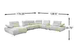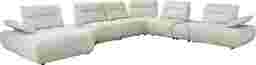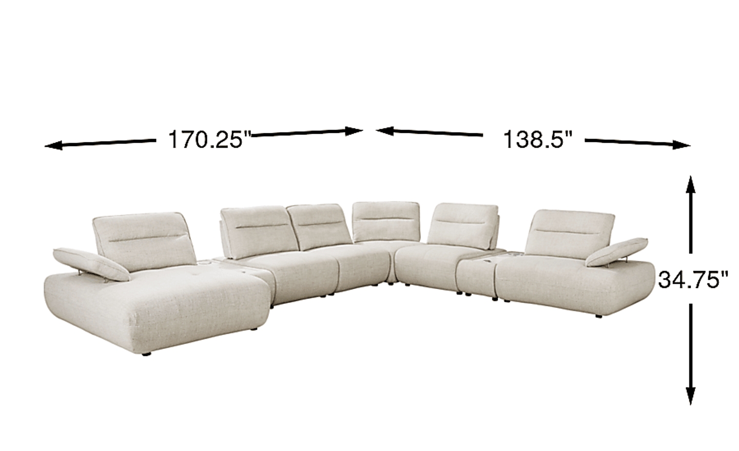 Distinctive design and adjustable comfort blend harmoniously in the Olympia sectional, creating a living space that never loses its exciting look and feel. Linen-colored chenille hugs stunning curves from the base to the tufted seat cushions and the top of each wedge-shaped back cushion. Seat backs feature individually adjustable depth for the perfect comfort setting. The height of each arm can also be adjusted to positions ideal for leaning or even laying down. Bringing another layer of luxury, the console in this configuration includes a bluetooth-enabled sound system and USB charging ports set into a white top with a marble pattern. Upholstery: 100% polyester. Accent pillows not included.