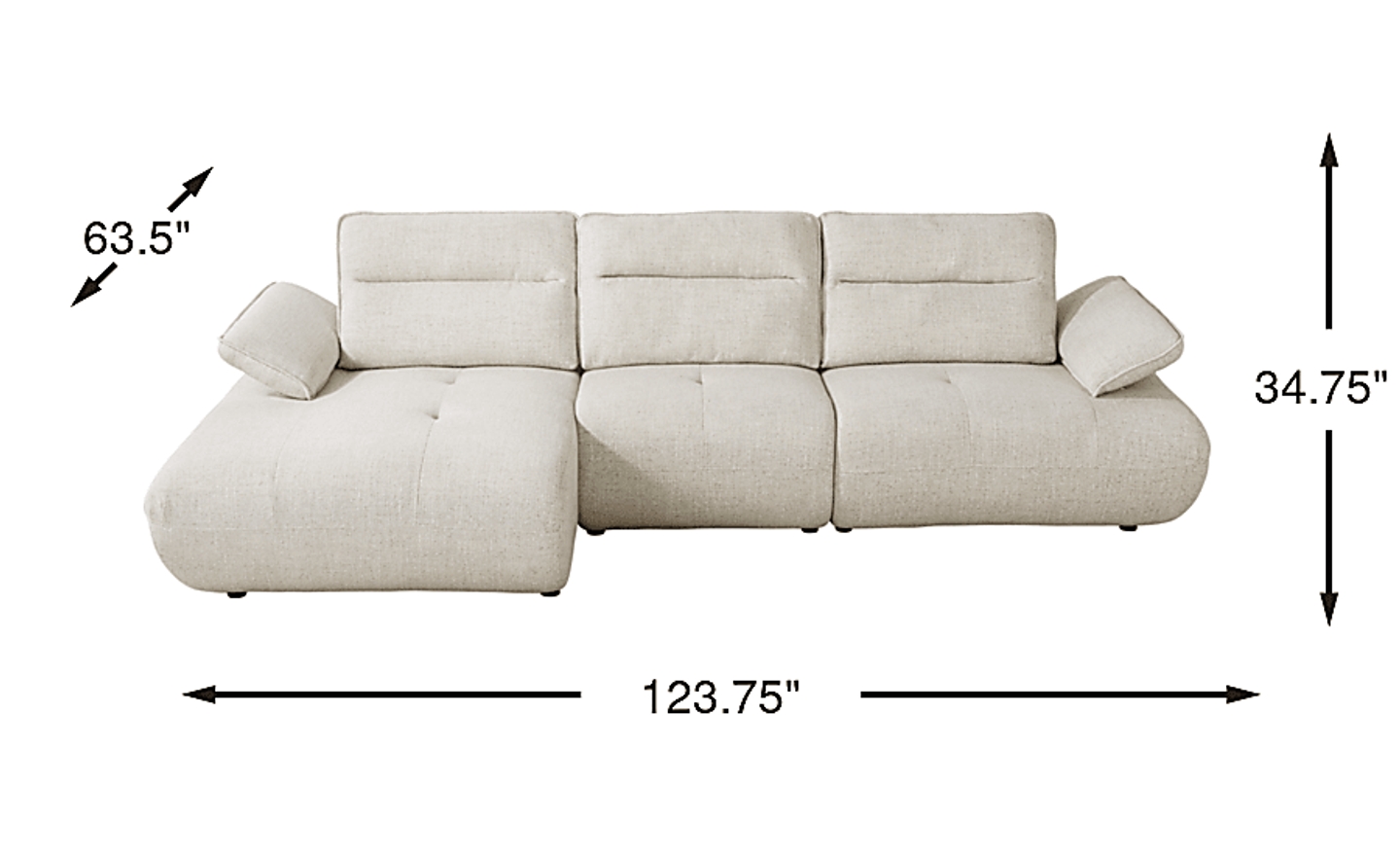 With a width of 123.75 inches, this sofa is a substantial piece that excels in open-concept spaces by creating a clear "zone" for relaxation. While it provides expansive seating, its contemporary, low-profile height (34.75 inches) prevents it from overwhelming a room visually. Before ordering, we recommend measuring your entryways and halls; our delivery expertise suggests ensuring you have at least 35 inches of clearance to accommodate the frame's height during the move-in process.