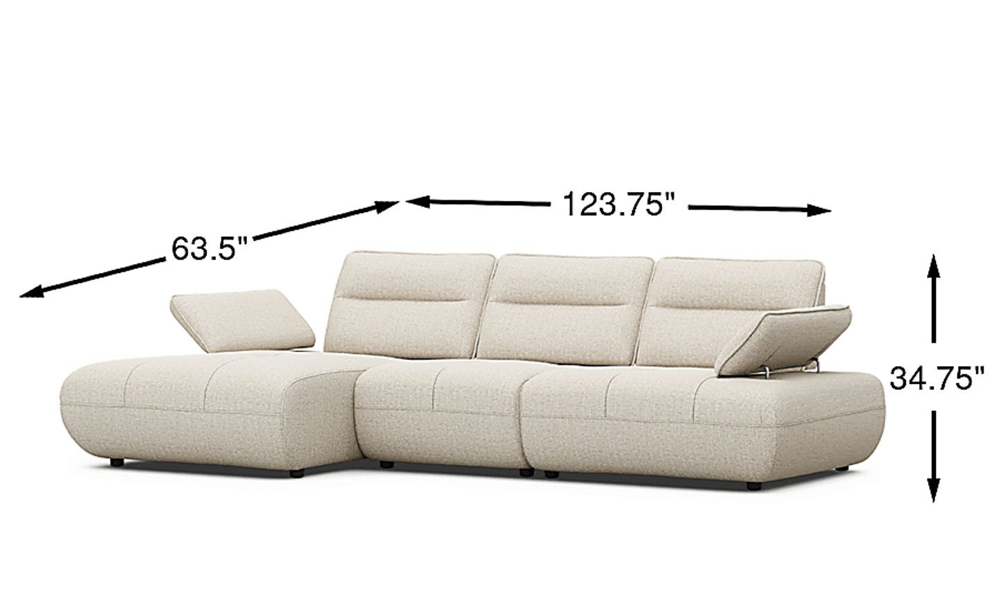 With a width of 123.75 inches, this sofa is a substantial piece that excels in open-concept spaces by creating a clear "zone" for relaxation. While it provides expansive seating, its contemporary, low-profile height (34.75 inches) prevents it from overwhelming a room visually. Before ordering, we recommend measuring your entryways and halls; our delivery expertise suggests ensuring you have at least 35 inches of clearance to accommodate the frame's height during the move-in process.