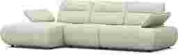 Distinctive design and adjustable comfort blend harmoniously in the Olympia sofa, creating a living space that never loses its exciting look and feel. Linen-colored chenille hugs stunning curves from the base to the tufted seat cushions and the top of each wedge-shaped back cushion. Seat backs feature individually adjustable depth for the perfect comfort setting. The height of each arm can also be adjusted to positions ideal for leaning or even laying down. Upholstery: 100% Polyester.