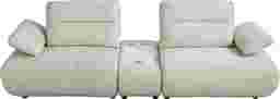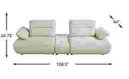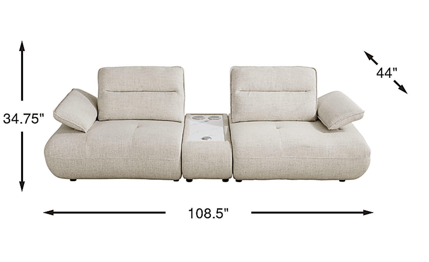 Distinctive design and adjustable comfort blend harmoniously in the Olympia loveseat, contributing to a living space that never loses its exciting look and feel. Linen-colored chenille hugs stunning curves from the base to the tufted seat cushions and the top of each wedge-shaped back cushion. Seat backs feature individually adjustable depth for the perfect comfort setting. The height of each arm can also be adjusted to positions ideal for leaning or even laying down. Bringing another layer of luxury, the console in this configuration includes a bluetooth-enabled sound system and USB charging ports set into a white top with a marble pattern. Upholstery: 100% Polyester.