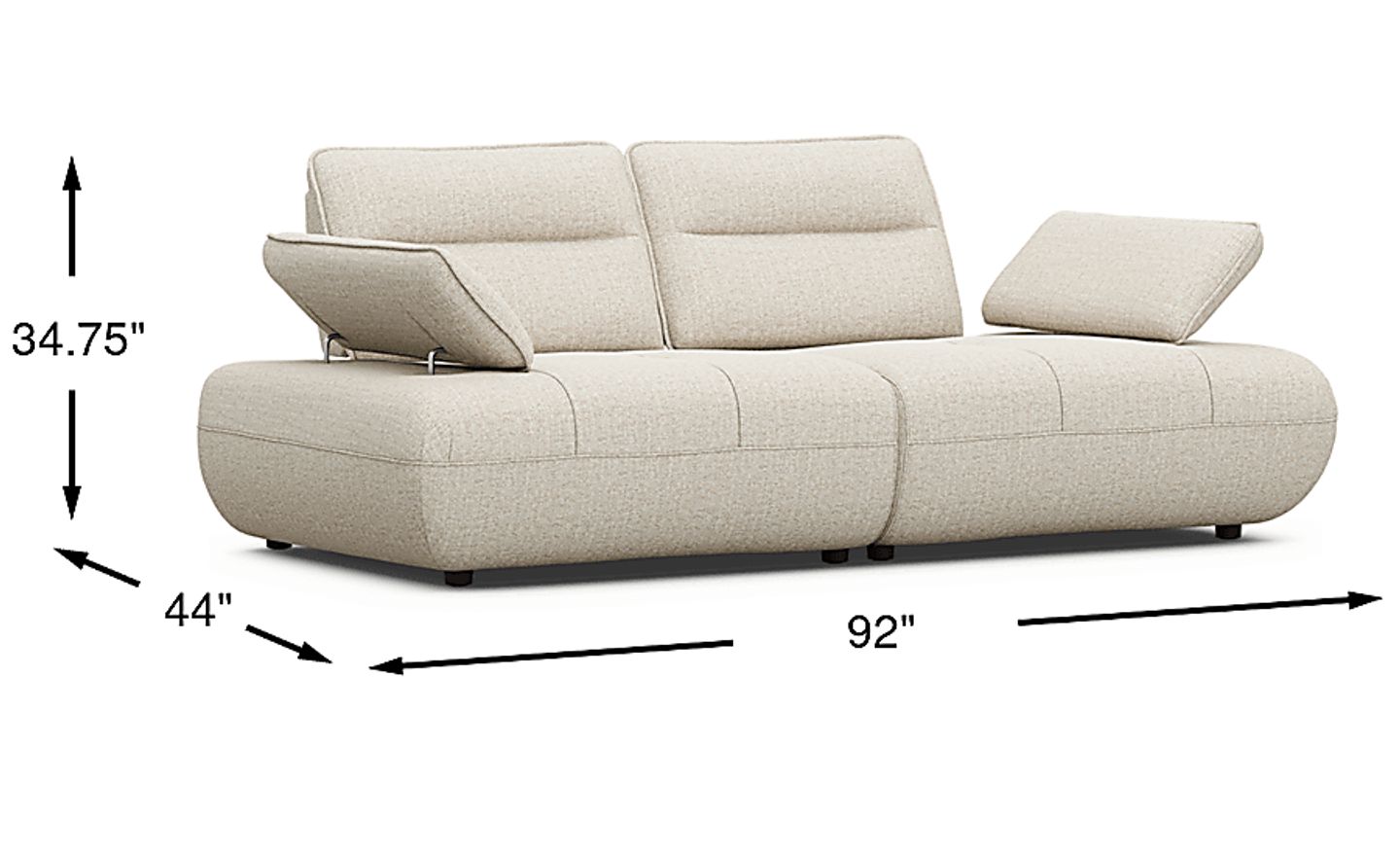 The Olympia is designed for customized ergonomics. The wedge-shaped back cushions feature individually adjustable depths, allowing you to set the perfect level of support for your frame. Furthermore, the height of each arm can be modified; they can be raised for supportive leaning or lowered to a flat position, which is ideal for laying down and utilizing the full 92-inch width of the piece for a nap.