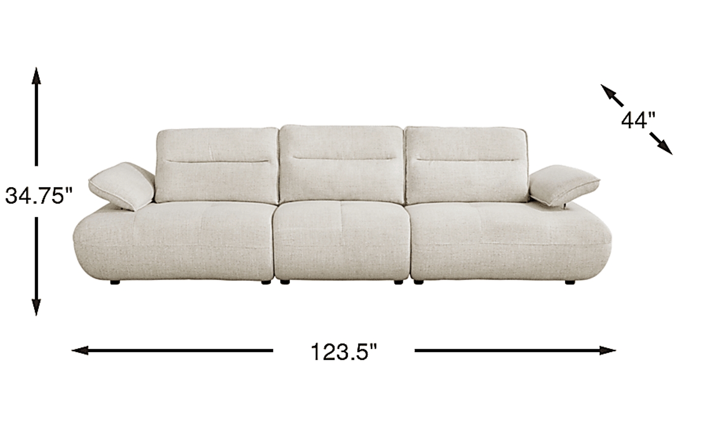 Distinctive design and adjustable comfort blend harmoniously in the Olympia sofa, creating a living space that never loses its exciting look and feel. Linen-colored chenille hugs stunning curves from the base to the tufted seat cushions and the top of each wedge-shaped back cushion. Seat backs feature individually adjustable depth for the perfect comfort setting. The height of each arm can also be adjusted to positions ideal for leaning or even laying down. Upholstery: 100% polyester.