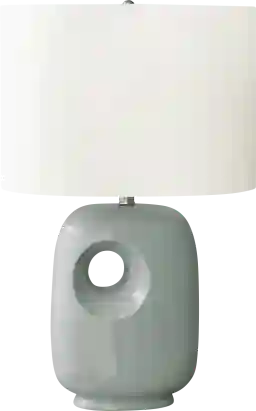 Illuminate your space with the modern and trendy Omaha Reef Green Lamp with a sleek green ceramic base and topped with a linen-blend, ivory fabric shade. The architectural and contemporary cut-out design on this lighting piece will easily brighten and elevate your home decor whether placed on an end or side table, or on a nightstand as a chic decorative and functional accent. Partial assembly may be required.