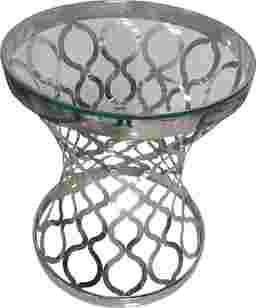 The Omeara metal side table is designed with a geometric cut design with a mirror chrome exterior finish. Completed with a glass top. Customer assembly is required.