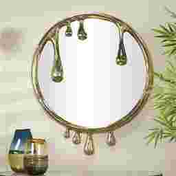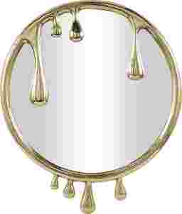 Elevate your space with Ominni, where bold design meets minimalist sophistication. Its sleek lines and polished gold finish transform any wall into a captivating centerpiece. Crafted from mirrored glass and sculpted aluminum, this round wall mirror features striking drip details that blend modern artistry with timeless elegance. The eye-catching design draws attention and instantly enhances the ambiance of your room. Imagine the compliments as its reflective surface amplifies light and style throughout your space. Bring home Ominni today and let your walls make a statement of luxury and creativity.
