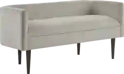 The Onderdon bench offers a fashionably unique update to your living room or entryway. This accent bench is upholstered in a rich cream velvet fabric and features a low back and sides, for a chic transitional look. The solid wood legs flaunt a dark brown finish that adds a bold contrast to the upholstery. Customer assembly required.