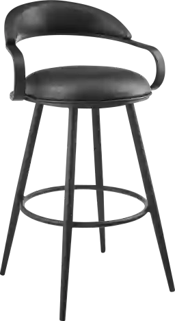 Revitalize any space with the sleek and inviting charm of the Orcone black barstool. The refined profile and sleek curves offer instant appeal and comfort. With a floating back and curved arms, this stool is ready to make a chic statement. Its hugging back and round seat are covered in easy-to-maintain faux leather to offer lasting style and comfort. The slim arms flow seamlessly into the small but comfy backrest. It lends a dynamic seating solution for your kitchen island, pub table, home bar, or adjustable desk. The built-in, circular footrest relieves pressure on your legs and back to offer a more comfortable seating experience. This stool includes a smooth, 360-degree swivel function, which allows you to turn and change directions with ease to promote smooth-flowing conversations in any arrangement. Customer assembly is required.