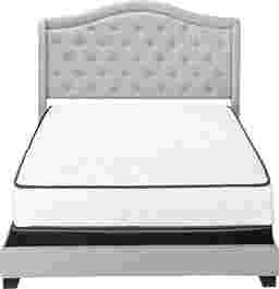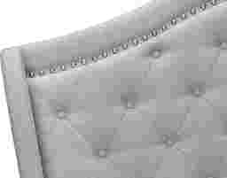 Give your bedroom a master appearance with the Orcow light gray queen bed, upholstered in a rich light gray velvet-look fabric. The gently curved classic style of this floor length headboard, outlined with a chrome nail head trim and cushioned diamond tufting, gives the bed a statement making flair. The clean lines of the upholstered sides and front frame brings a contemporary touch. The black plastic block-style legs, slightly angled at the front, adds stability to the whole bed frame. The box spring and mattress is not included. All parts and assembly instructions are included. Customer assembly is required.