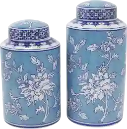 This set of jars is designed with a traditional aesthetic, featuring classic blue and white floral patterns that pair beautifully with "Old World" or refined luxury styles. For a balanced look, we recommend styling them on a mantel or a sideboard in an asymmetrical grouping. Since they come in two heights (14.5 and 12.2 inches), they create an instant visual "step" that draws the eye upward without overcrowding the surface.