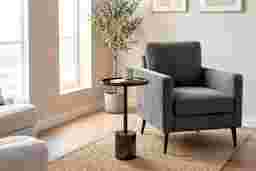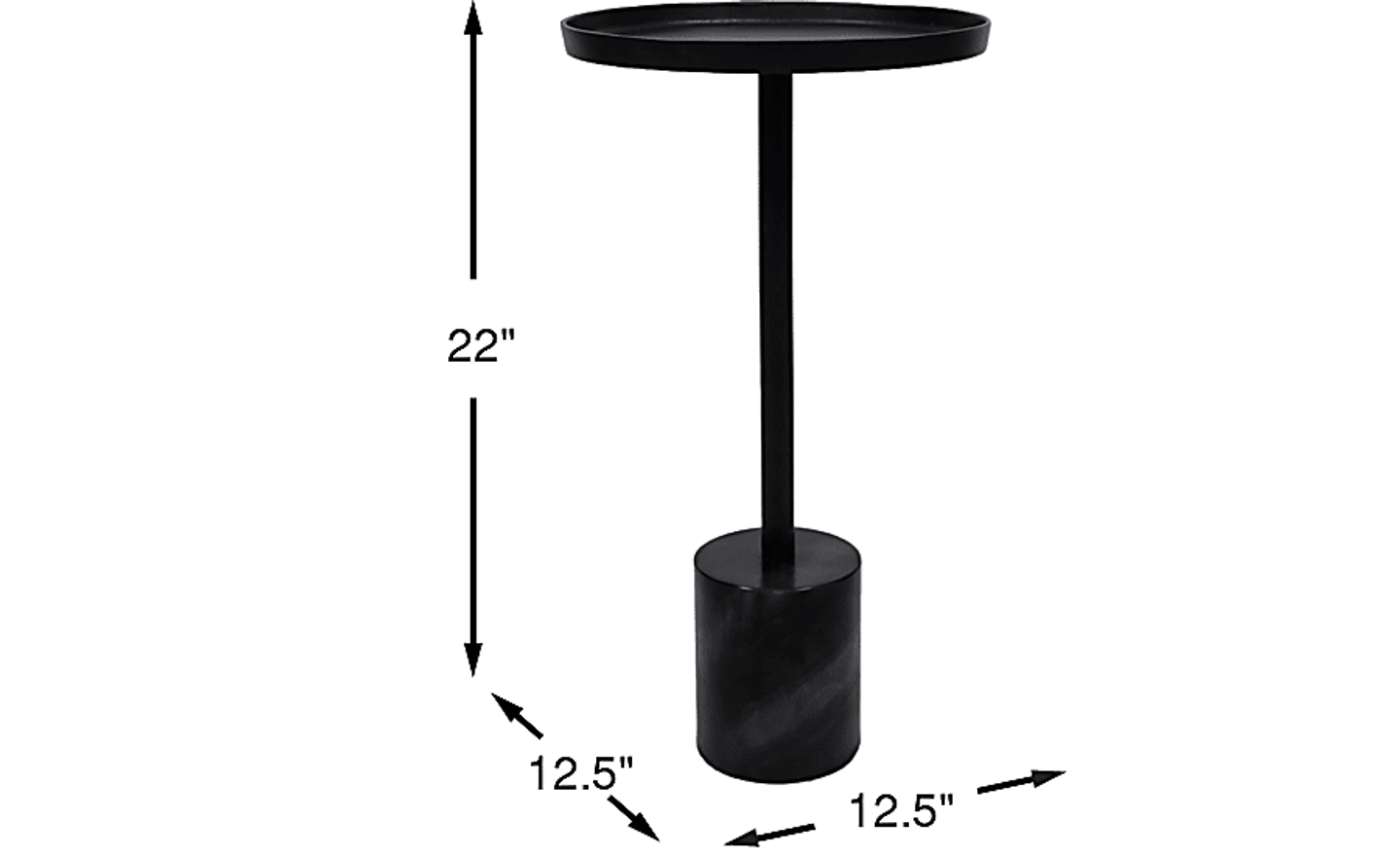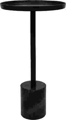 Glowing with the romance of an old-world atelier, the Orelia accent table brings chic elegance as the perfect companion beside a sofa, chair or bedside. Contemporary in style, this piece features a round black metal tray top that offers a polished perch for a drink, candle, or small book, while the slender stem creates a light, airy profile. A bold black cylindrical marble base anchors the accent, making the design feel both grounded and sophisticated.