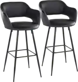 Inspired by contemporary design, the Orkhid Black Barstool, Set of 2 features a cut-out backrest ergonomically designed to fit your body, armrests for additional comfort, and a built-in footrest for added comfort. This barstool is upholstered with luxurious faux leather. Available in a variety of color options, choose the color that suits your space best Customer assembly required.